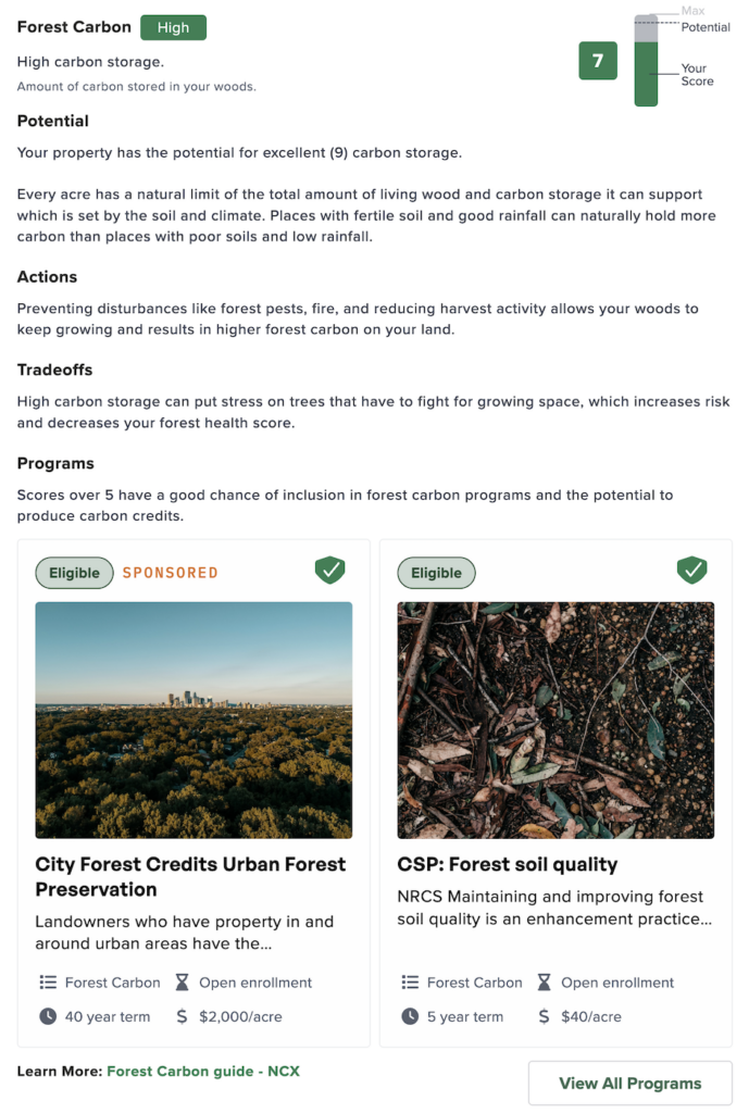 Click on any score to learn how to increase it and explore opportunities to monetize your natural capital: